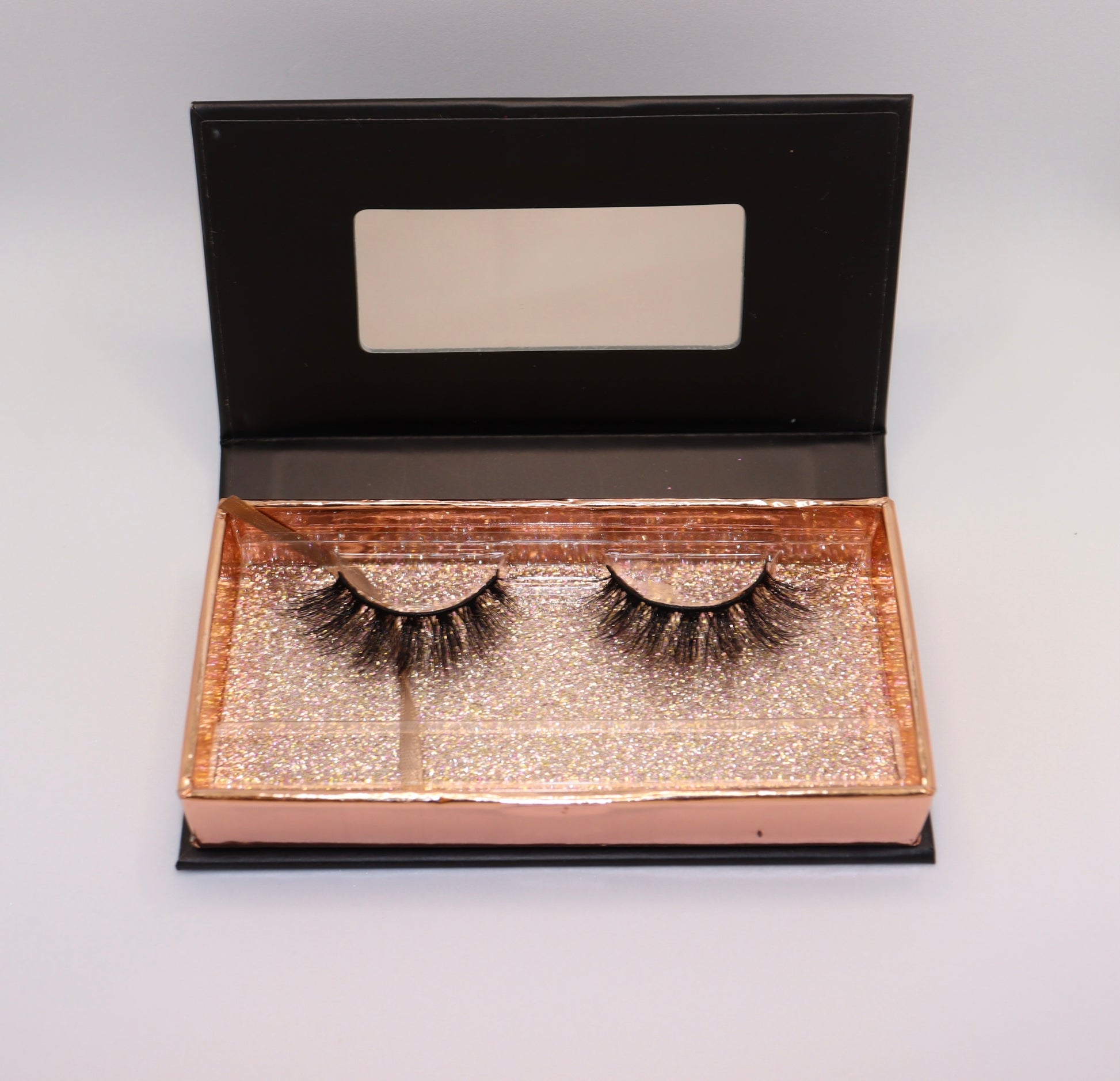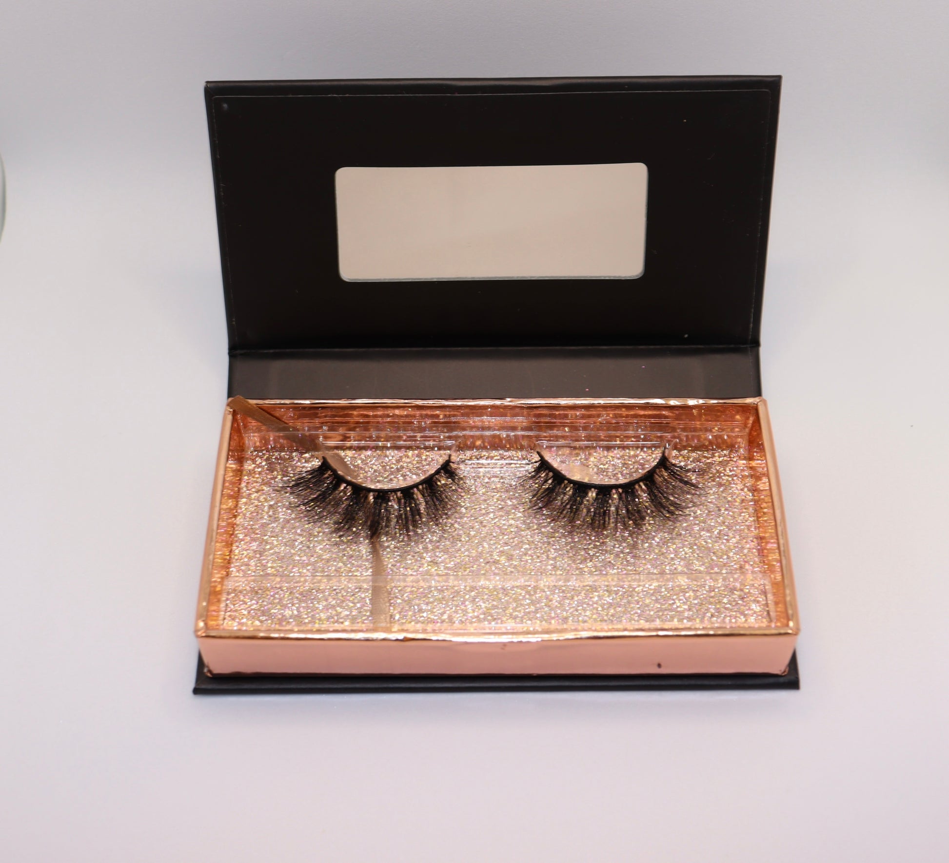 Unleash the beauty behind your eyes with our luxury glamorous vegan lashes. Designed to reveal the beauty that lies in your eyes. Handcrafted with precision and made from high-quality synthetic fibers, these lashes effortlessly add a touch of elegance and allure to your look. With their voluminous and glamorous effect, they create a captivating and mesmerizing aura that will leave everyone spellbound.Experience the perfect blend of style, quality, and let your inner beauty shine through with every flutter creating a truly enchanting and unforgettable impression.